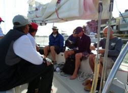 With a typical set up of 6 participants and 2 professional coaches on each boat, an event can be structured for groups of 6-80 participants, or even more if you wish to have spectators. A typical day begins with a continental breakfast and chalk talk with introduction to sailing. Once you are on the water a specific program can be tailored to your individual group’s requirements, including basic sailing, entry level racing, match racing and all out regattas which can become very competitive between company divisions or work groups.